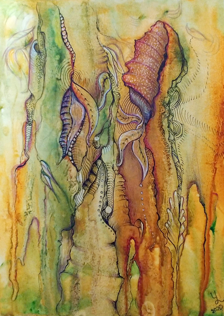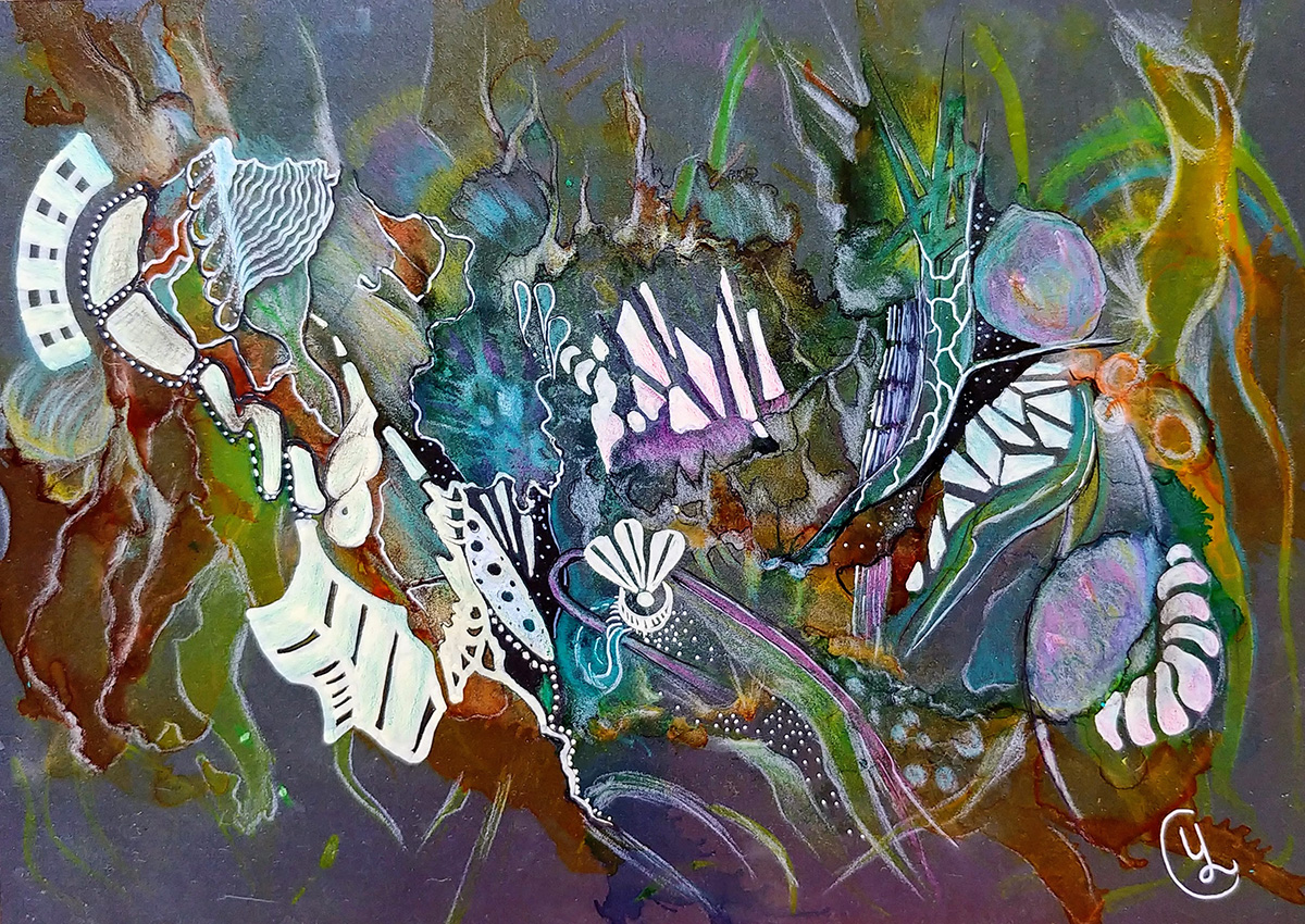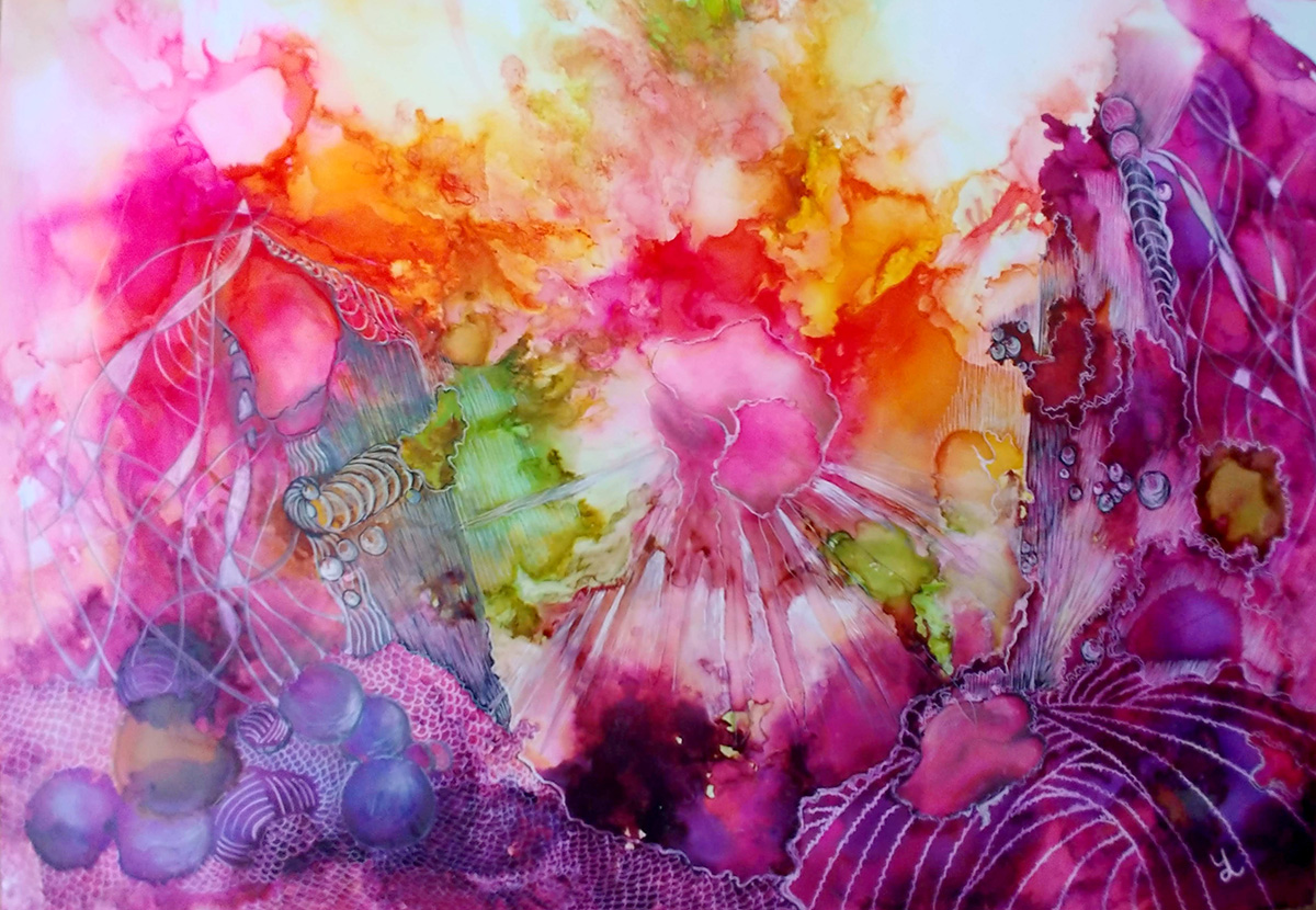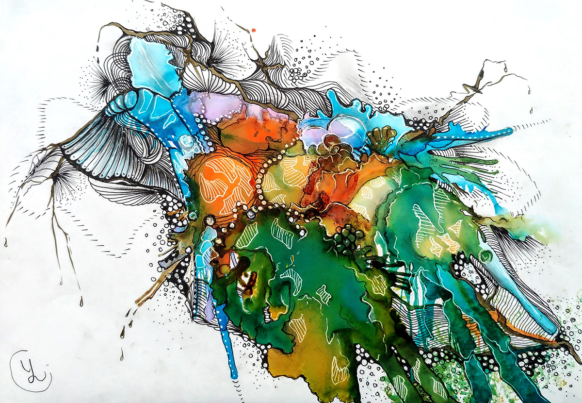 2020-2021 Golden Roots / mixed media Northern Lights / mixed media Network in Bloom / alcohol ink Perfume Only Once Perfume Zest For Life Leftover Gold / mixed media The Road to Uluru / white ink pen & markers Cosmos / alcohol ink & white ink pen A Pandemic in Capture / mixed media Violet Cocktail / alcohol ink & pen Dance of Splinters / mixed media Sound Meditation / mixed media Apocalypse / watercolour & pen Rumours Spread / pastel Improvisation / mixed media Octopus / mixed media Being Alive / mixed media Perfume “Alyona” / alcohol ink & pen Still Water Runs Deep / mixed media Flying Rocks / collage & mixed media Vibrations / mixed media Resonance / watercolor & pen Lean On Me / alcohol ink on yupo paper Roll the Field / mixed media Trembling / ink wash & fine pens On the Other Side of the Road / alcohol ink Singing Heart / artist markers & pen Crystal Water / artist markers Fluid Colours / acrylic on wood Time to Throw Stones / mixed media Windy Summer / artist markers & pen From Orange with Love / inkpen & markers Free to Go / mixed media Ambiguous Horizon / mixed media The Passion / inkpen & artist markers Transmission / artist markers Infinity / copic markers Between Up and Down / copic markers Passion For Life / mixed media Stretched Time / copic markers Autumn Motive / mixed media Autumn Sketch / coloured pencils & pen Flowing With a Glow / artist markers & pen White Sketch / inkpen & artist markers Golden Gate / mixed media Winter Etude / watercolour Cells in Action / artist markers & ink pen Getting Global / mixed media Graceful Living / artist markers & ink pen Spring Tangles / watercolour Morning Aura / artist markers & pen Life Miracle / artist markers & pen Free Style Dance / artist markers & pen In Balance / artist markers & ink pen In Flight / Watercolour, ink & markers Sketch in Mind / ink pen & pencils Share this: Share on X (Opens in new window) X Share on Facebook (Opens in new window) Facebook Like Loading...